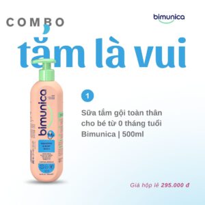 Combo Tắm Là Vui | DDVS bé gái 0+ Bimunica; Sữa tắm gội toàn thân 0+ Bimunica; Viên giặt ETU