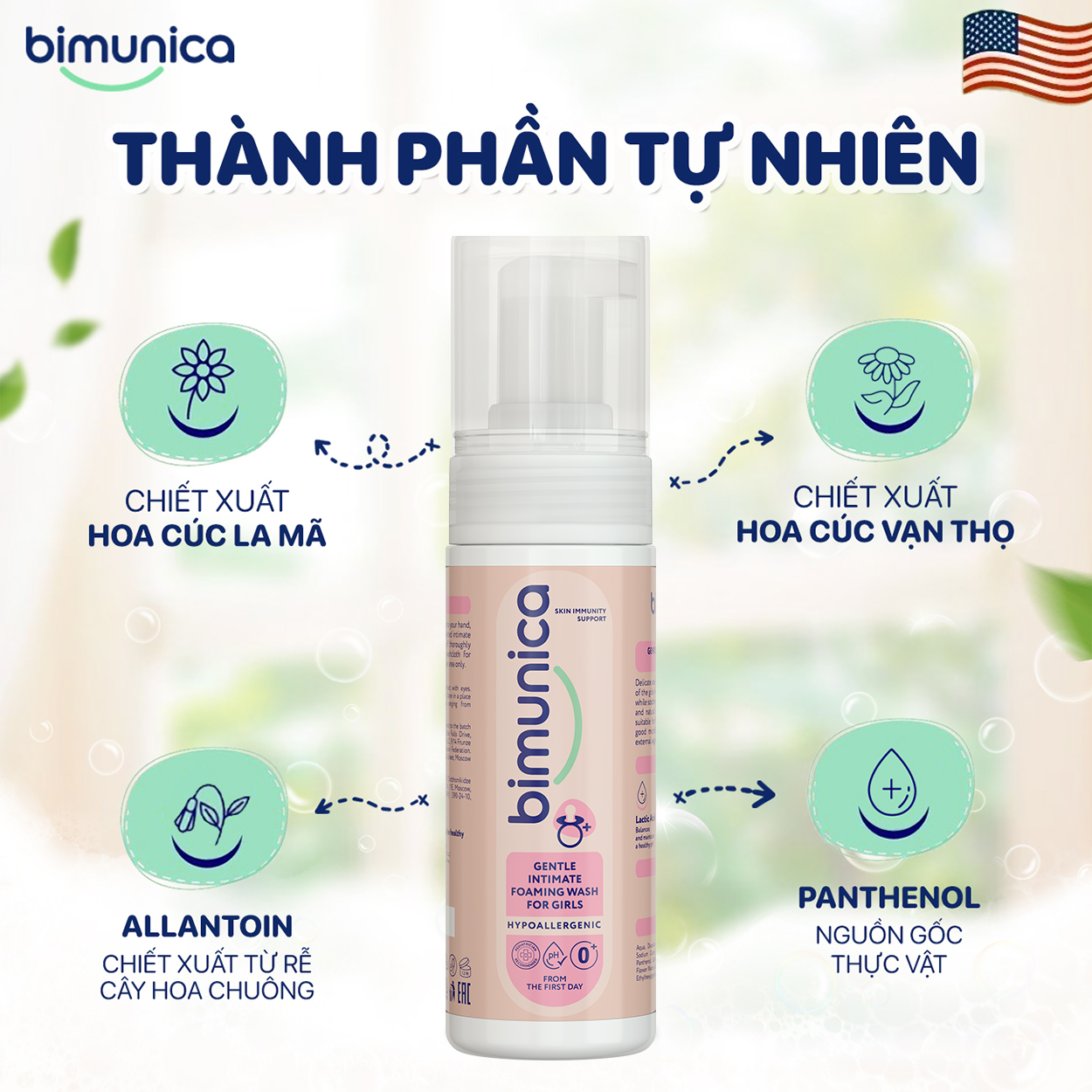 Combo 2 chai Bọt vệ sinh bé gái Bimunica cho bé từ 0 tháng tuổi – 150ml