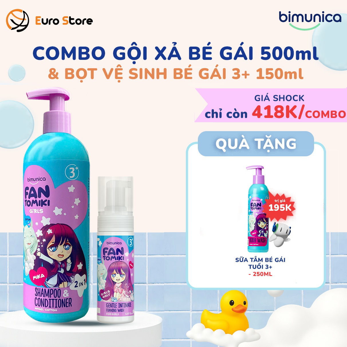 Combo Dầu gội xả (500ml) và Bọt vệ sinh Bimunica FantoMiki (150ml) cho bé từ 3+