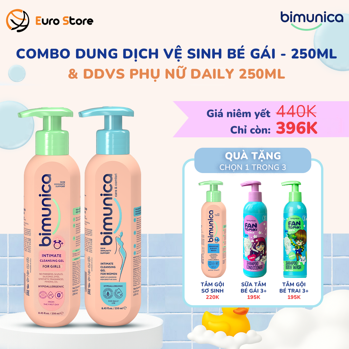 Vùng nhạy cảm của bé gái và phụ nữ luôn cần sự chăm sóc chuyên biệt để duy trì độ pH lý tưởng và ngăn ngừa viêm nhiễm. Combo Dung dịch vệ sinh Bimunica mang đến giải pháp bảo vệ “kép”: vừa dịu nhẹ nâng niu làn da non nớt của bé từ 0 tháng tuổi, vừa giúp mẹ tự tin, thoải mái suốt cả ngày dài.