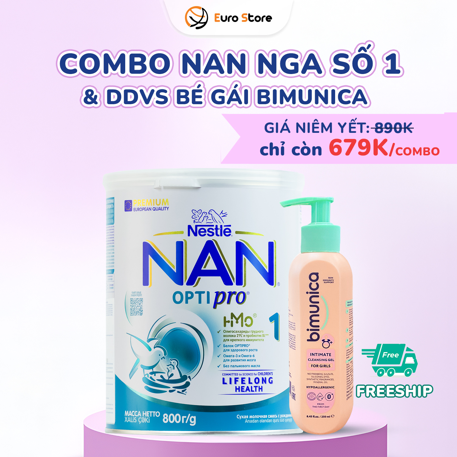 Combo Nan Nga số 1 (800g) & Dung dịch vệ sinh bé gái Bimunica (250ml)